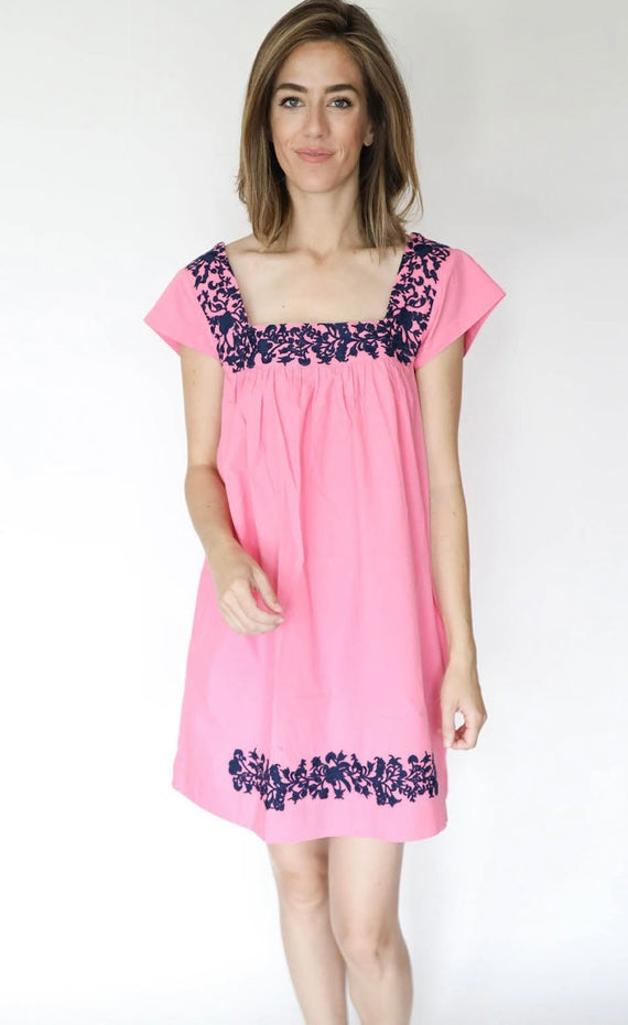 Lola Embroidered Dress - Pink