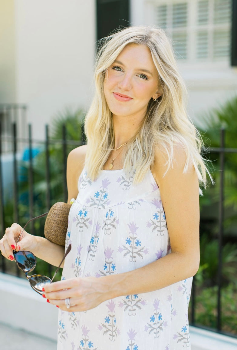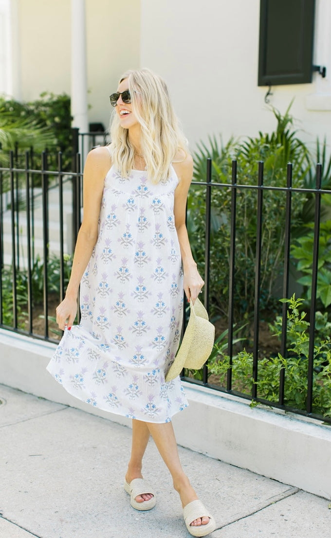 Breezy mornings, sunny strolls, and the scent of salt air – this easy cotton midi is made for slow, beautiful days. With a delicate lavender floral print and soft spaghetti straps, it’s the kind of dress that feels like vacation, even if you’re just walking to the farmer’s market.