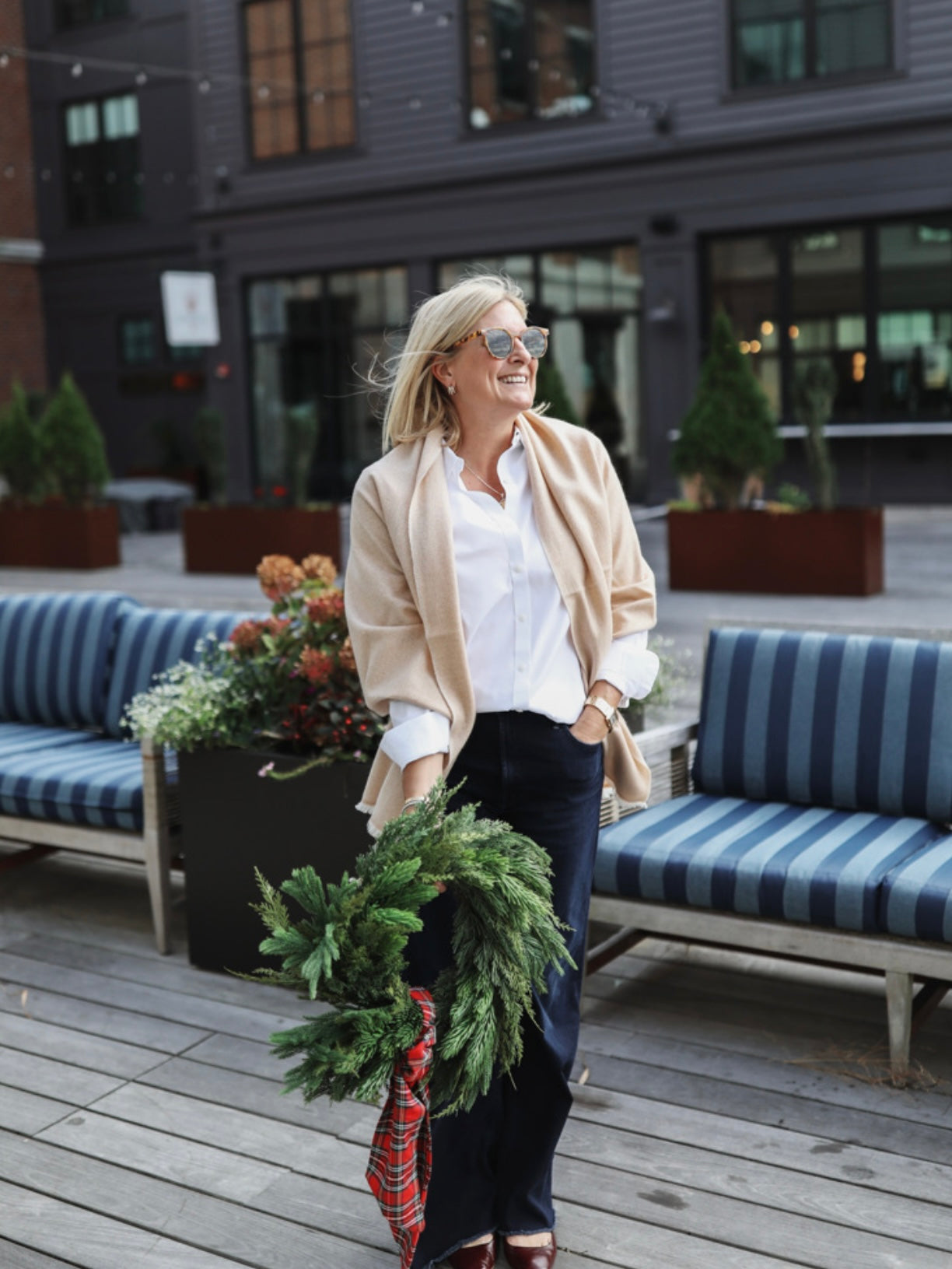 Cashmere Wrap - Camel Herringbone