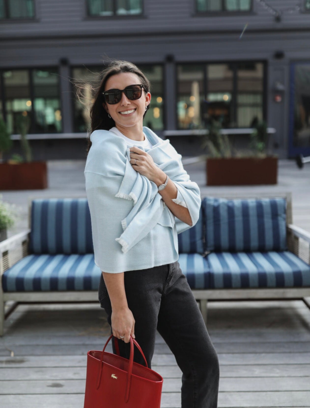 Cashmere Wrap - Sky Blue Herringbone