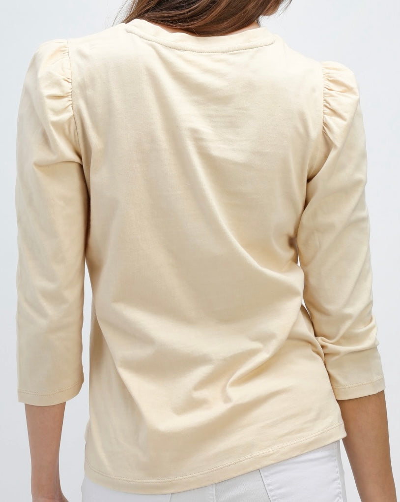 Easygoing with a touch of charm, this neutral cotton top is your go-to layer for cooler days. The puff sleeve adds just enough polish to elevate the everyday.