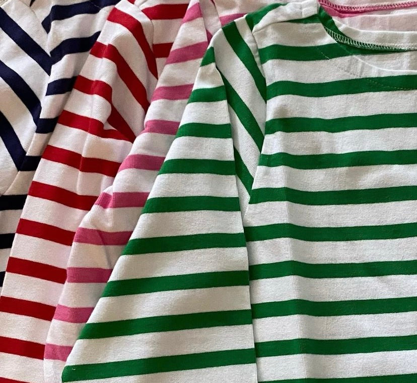 Pam M. I love all my striped shirts but nothing is a pretty as it is in pink. Good weight for cooler nights, good length and I love it🥰