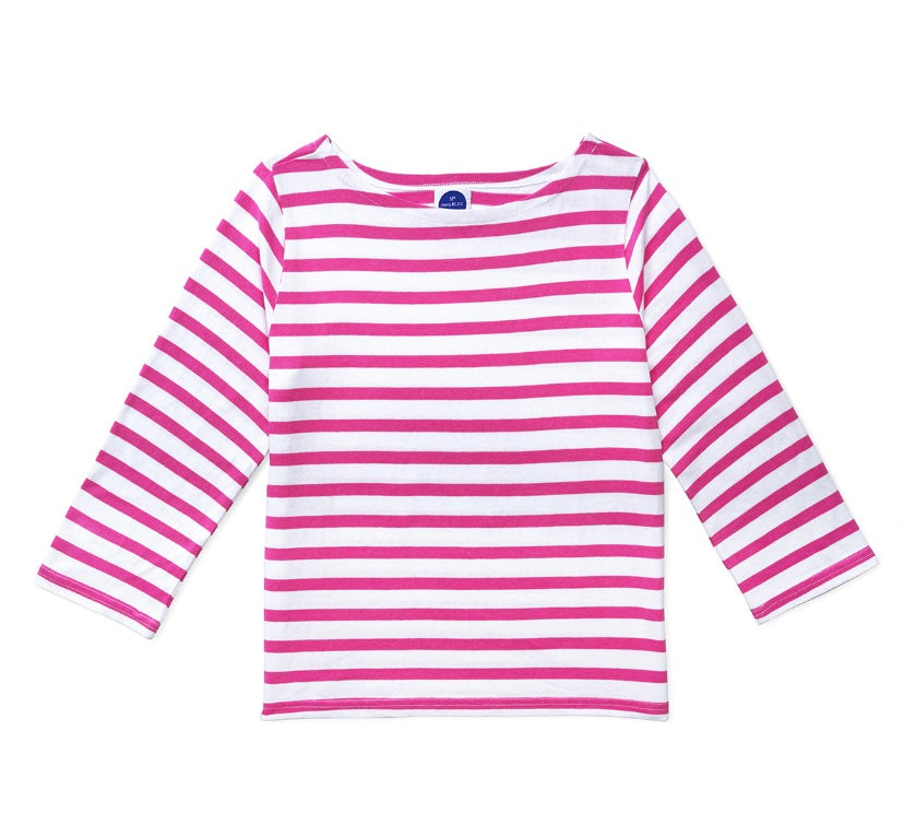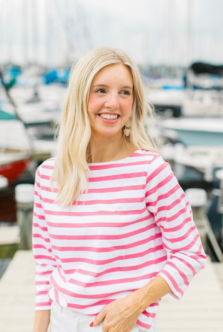 A fresh twist on a forever favorite. This long-sleeve Breton tee in pink and white stripes is crafted from soft 100% cotton with a classic fit and boat neckline. Easy to wear, easy to pair—tuck it into denim, layer under a jacket, or throw it on over a swimsuit. A wardrobe staple you'll reach for all year.