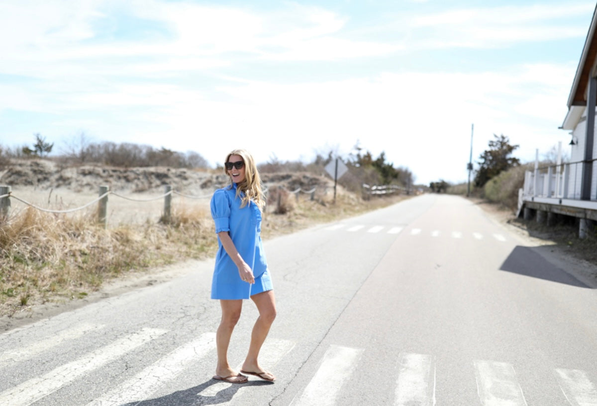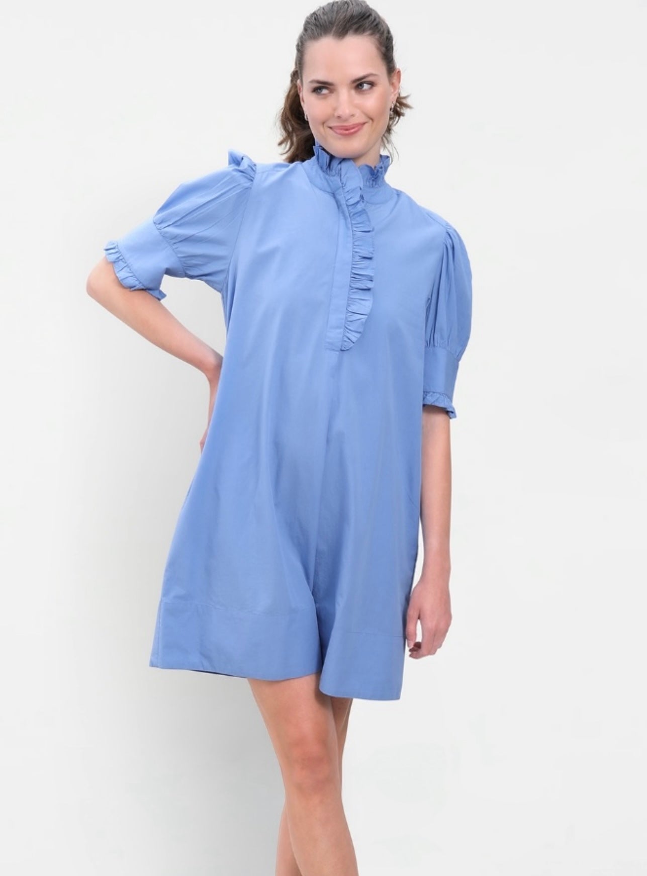 Crisp cotton poplin meets sweet New England charm. The Westport Dress features a ruffled neckline, puff sleeves, and an easy, above-the-knee silhouette you’ll wear on repeat.